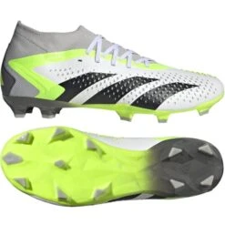 Dank der adidas Predator Accuracy.2 FG – Crazyrush bekommst du Fußballschuhe zur besseren Kontrolle des Balles. Die adidas Predator Accuracy.2 haben ein Hybridtouch Synthetik Material und ermöglichen dir damit jeden Ballkontakt noch zu optimieren. Die FG Nockensohle ist spezielle auf den Rasenplatz ausgelegt und ermöglicht dir einen guten Halt auf dem Boden. Mit dem Crazyrush Pack bekommst du die adidas Predator in der weiß grauen Farbkombination der Saison 2023/2024.