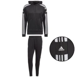 Mit dem adidas Squadra 21 Kapuzen Trainingsanzug bekommst du einen Sportanzug aus Polyester. Der Trainingsanzug besteht aus dem Squadra Hoodie und der Squadra Trainingshose. Neben dem Sport kannst du diesen adidas Kapuzenanzug auch für deine Vereinsbekleidung verwenden. Beachte Bitte das du beim adidas Squadra Kapuen Trainingsanzug keine Jacke bekommst sondern ein modernes Kapuzensweatshirt.