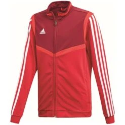 Mit der adidas Tiro 19 Polyesterjacke kaufst du dir eine Sportjacke und Freizeitjacke. Die Polyesterjacke aus dem adidas Tiro 19 Polyesteranzug kannst du zum aktiven Sport tragen oder auch zur Präsentation. Durch das strapazierfähige Polyestermaterial mit leicht elastischen Eigenschaften hat die Polyesterjacke einen sehr hohen Tragekomfort. Als typisches Merkmal bekommst du die adidas Tiro 19 Polyesterjacke mit breiten elastischen Bündchen im Saumbereich und an den Armen.
