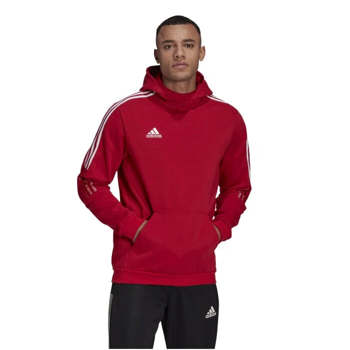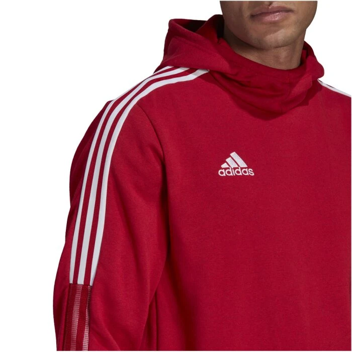 Das adidas Tiro 21 Hoody bestellst du als Kapuzensweatshirt aus 70% Baumwolle und 30 rec. Polyester.