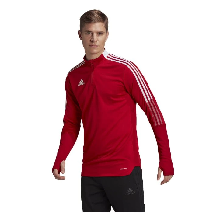 Mit dem adidas Tiro 21 Training Top bekommst du das Langarm Trainingsoberteil für den Sport. Das adidas Training Top ist sportliche geschnitten und verfügt über seinen hohen Kragen zum Schutz gegen die Witterung. Zudem bekommst du beim adidas Tiro 21 Trainingstop eine Daumenschlaufe und das neue Mesh Design der 3 Streifen. Wenn du das adidas Trainingsoberteil für deine Vereinsbekleidung bestellen willst kannst du das Training-Zip-Top bei uns auch gleich bedrucken/beflocken lassen.