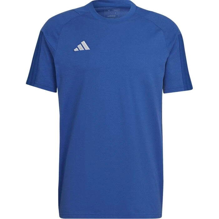 Das adidas Tiro 23 Competition Tee bestellst du als T-Shirt zur Präsentation aus 65 % Baumwolle / 35 % recycelten Polyester (Waffel).