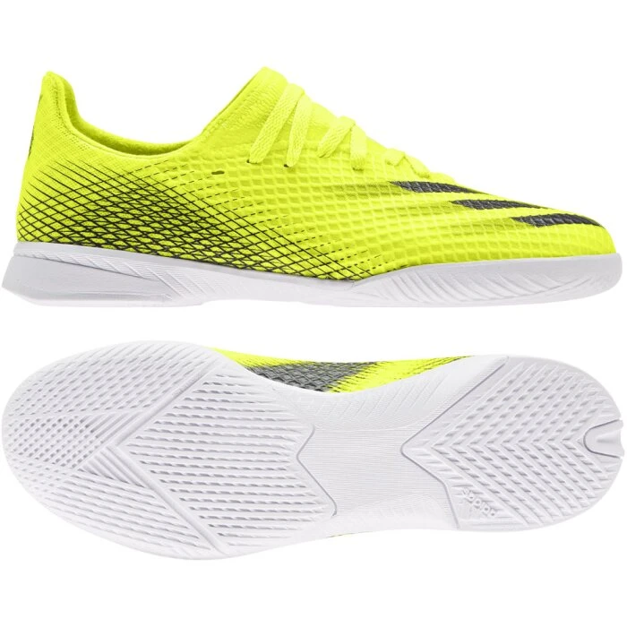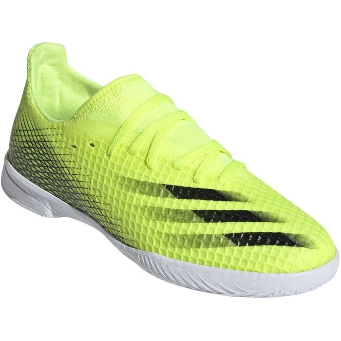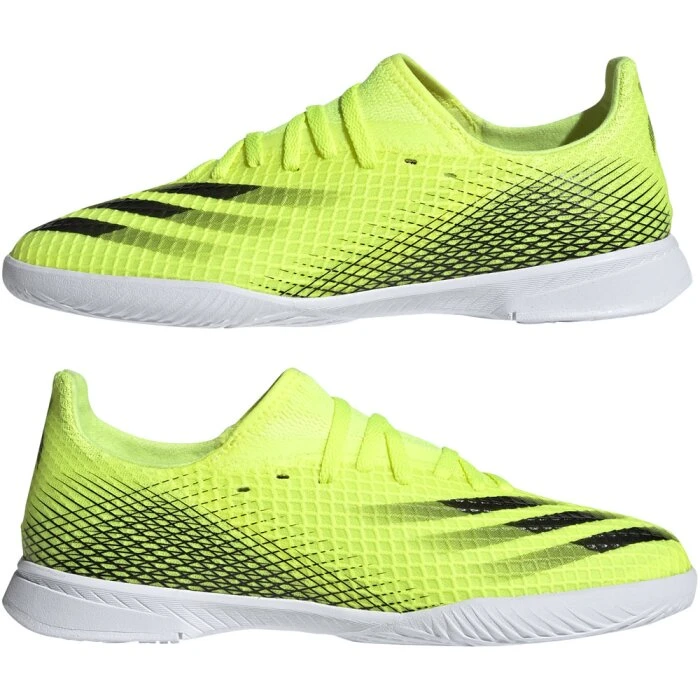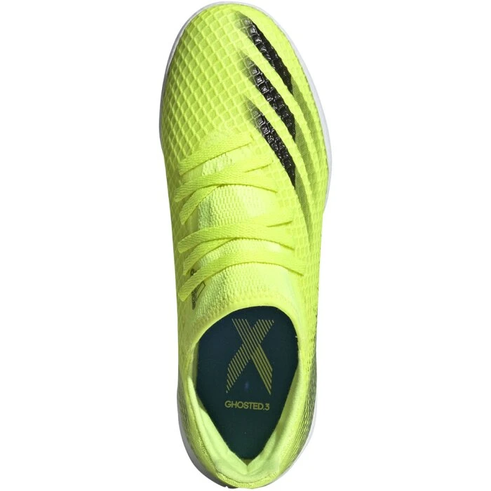 Die adidas X Ghosted.3 IN J sind Hallensportschuhe und Hallenfußballschuhe für Kinder. Mit dem X Ghosted.3 Superlative bekommst du diese Kinderhallenschuhe jetzt in einer speziellen gelben Sonderfarbe. Die adidas X Schuhe sind dabei ausgestattet mit einem Synthetik Material und einer IN Hallensohle.