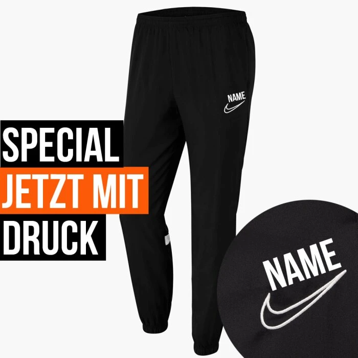 Dank der Nike Academy x You Freizeithose mit Initialen bekommst du jetzt deine coole Präsentationshose direkt mit deine eigene Initialen oder deiner Nummer. Die Nike Woven Pant wird damit zu deiner ganz eigenen Nike Hose und einem perfekten Lifestyle Artikel. Jede Nike Hose wird extra für dich bedruckt!