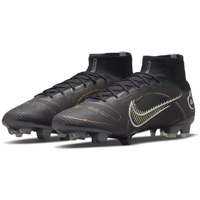 Mit dem Nike Mercurial Superfly 8 Elite FG – Shadow Pack bekommst du die Speed Fußballschuhe endlich wieder im schwarzen Design. Die Nike Mercurial Superfly kombinieren ein geringes Gewicht mit einem besonders anpassungsfähigen Flyknit Material und der Dynamic Fit Sock. Du bekommst so alle Features um auch bei einem hohen Speed eine sehr gutes Ballgefühl und eine hohe Stabilität zu haben. Natürlich haben auch die schwarzen Nike Mercurial Superfly Elite wieder die FG Speed Nocken.