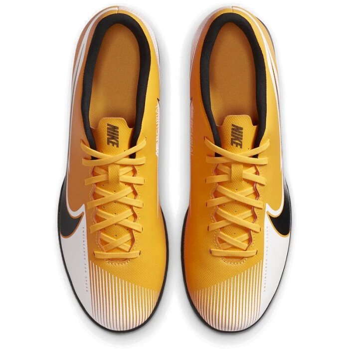 Durch den Nike Mercurial Vapor 13 Club IC Daybreak bekommst du günstige Nike Hallenschuhe mit einem geringen Gewicht. Wie alle Nike Mercurial ist auch der orangee Daybreak Schuhe auf Speed ausgelegt. Durch die IC Sohle sind die orangene Nike Mercurial Vapor 13 Club für die Halle, Straße oder auch die Soccerhalle gedacht.