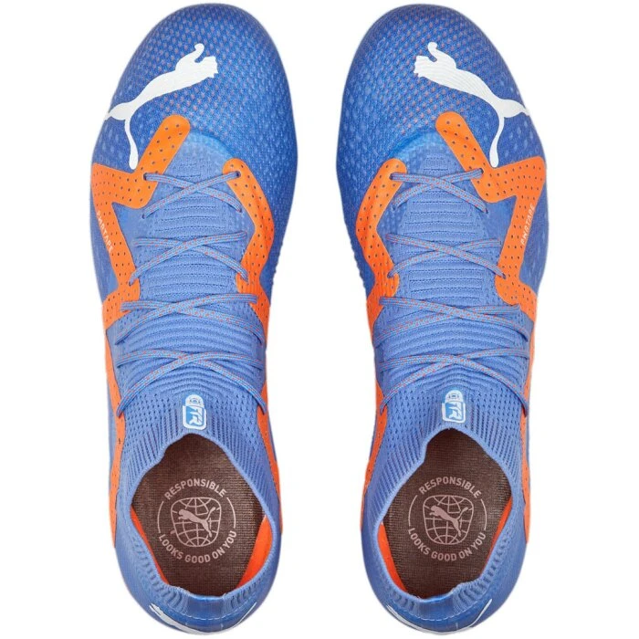 Bestell dir die Puma Future Ultimate FG/AG aus dem Supercharge Pack in der Farbe Blue Glimmer-PUMA White-Ultra Orange.