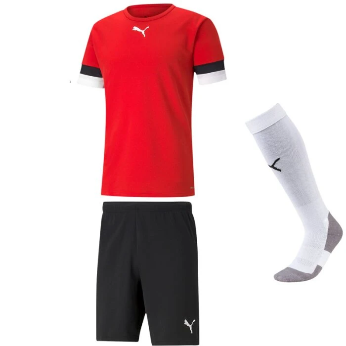 Günstig und farblich Perfekt zusammengestellt! Das ist der Puma teamRise Trikotsatz mit Trikots, Hosen und Stutzen. Wir haben in diesem Puma Trikotsatz das günstige teamRise Trikot mit einer farbliche passenden teamRise Short und einem weißen Strumpfstutzen kombiniert. Du bekommst so einen 3-Farb-Look für dein Team mit einem Preis der niedriger derzeit nicht möglich ist. Auf Wunsch kannst du den Trikotsatz auch bei uns bedrucken lassen.