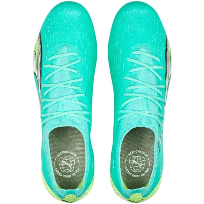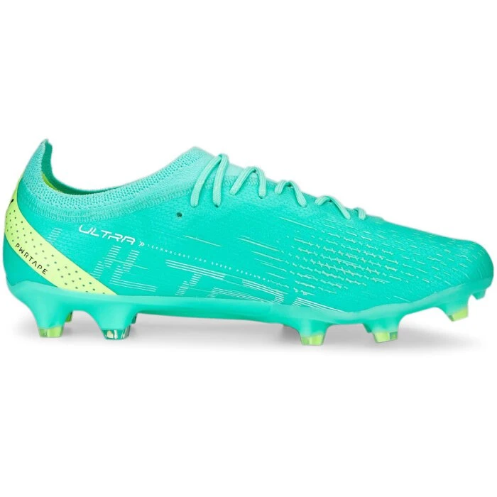 Diese Puma Ultra Ultimate FG/AG bestellst du als Speed Schuhe des Pursuit Pack in der Farbe electric peppermint/puma white/fast yellow.