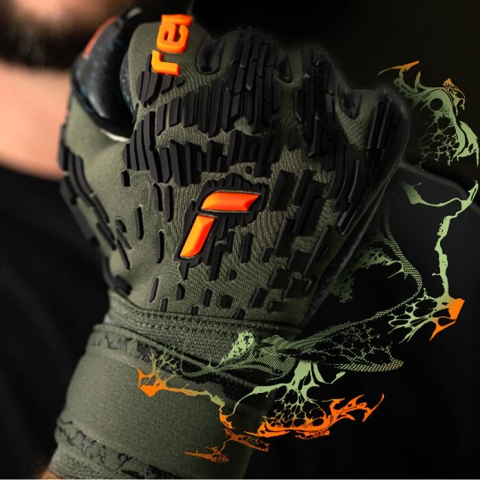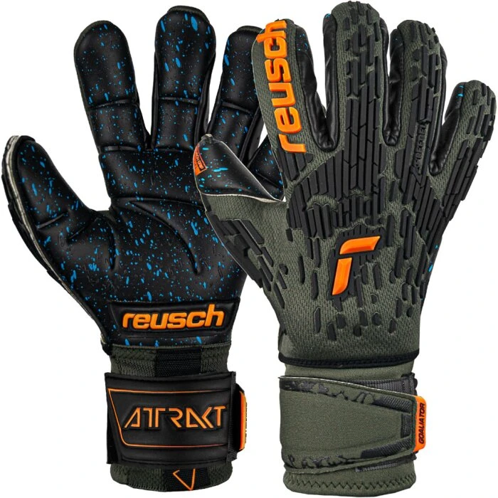 Diese Reusch Attrakt Freegel Fusion Ortho-Tec Goaliator Desert Bloom bestellst du als WM 2022 Torwarthandschuhe in der Farbe desert green/shock orange/black.