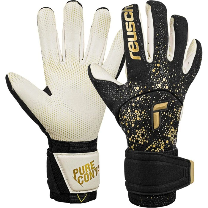 Diese Reusch Pure Contact Gold X GluePrint bestellst du Torwarthandschuhe mit Kleber auf dem Haftschaum in der Farbe black/gold.